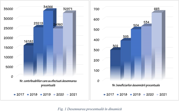 Serviciul Fiscal de Stat (SFS) anunță că anul 2021 a fost cel de-al cincilea an în care persoanele fizice plătitoare de impozite din Republica Moldova au avut dreptul de a redirecționa 2% din impozitul lor pe venit către o organizație necomercială sau o entitate religioasă. Potrivit informațiilor, în acest an 34 805 de contribuabili au efectuat desemnarea procentuală dintre care 32 971 au fost validate în sumă totală de 9 153 236,11 lei.