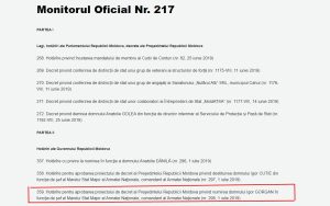 Decizia de numire a lui Gorgan a fost publicată în Monitorul Oficial în data de 3 iulie.