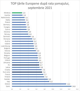 În trimestrul trei al anului Republica Moldova a înregistrat cea mai mică rată a șomajului din istorie. Țara noastră a data peste cap și statisticile UE unde rata șomajului a fost de 6,7%. „Drama cea mai mare este că rata mică a șomajului se datorează exodului mare al forței de muncă. Cetățenii când nu au unde munci pleacă peste hotare”, constată economistul Veaceslav Ioniță în emisiunea „Realitatea economică”.