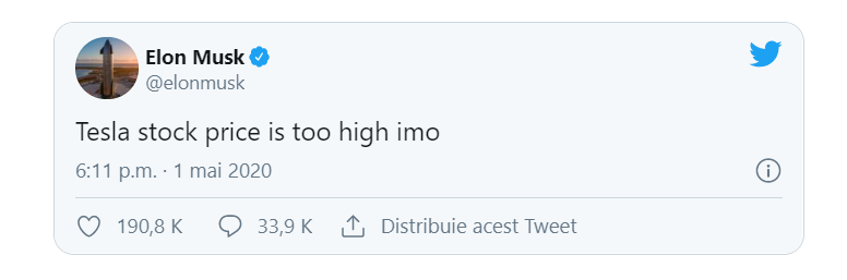 Vestea vine la patru zile după ce un tribunal din Delaware a deschis un proces al unor investitori Tesla. Aceștia l-au acuzat pe Musk că a scăzut de unul singur prețul acțiunilor companiei, după ce acesta a postat pe Twitter mai multe mesaje, printre care „Prețul acțiunilor Tesla este prea mare”.
