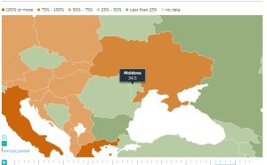 Datele FMI arată că datoria publică a Republicii Moldova are o ponedere în PIB de 34.5% față de cea a României de 48,3% și a Ucrainei de 98,3%.