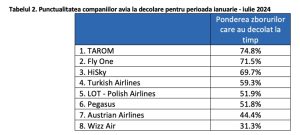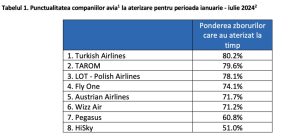 Cele mai punctuale companii la aterizare au fost Turkish Airlines, TAROM și LOT Polish Airlines. La decolare, cele mai punctuale au fost TAROM, Fly One și HiSky. Totuși, companiile cu cele mai multe întârzieri la aterizare au fost WizzAir, Pegasus și HiSky, iar la decolare – Pegasus, Austrian și WizzAir.