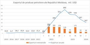 Războiul din Ucraina a generat anterior exporturi suplimentare pentru Moldova, de până la 970 milioane USD anual, datorită exporturilor de produse petroliere și altor bunuri importate din diverse țări și reexportate în Ucraina sau în alte destinații.