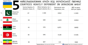 Alte țări care importă masiv grâu din Ucraina sunt Libia (570.000 de tone, sau 46% din importuri), Tunisia (646.000 de tone, 36% din importuri) și Etiopia (607.000 de tone, 36% din importuri).
