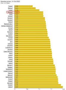 În același timp, conform datelor publicate de către Globalpetrolprices.com, la situația din 31.10.2022, prețurile stabilite de către ANRE rămân a fi în continuare unele din cele mai mici de pe continentul european. Prețuri mai joase decât în Republica Moldova pot fi găsite doar în Federația Rusă, Belarus și Turcia, țări care dispun de capacități proprii semnificative de producere și care reprezintă jucători importanți în lanțul logistic regional de utilizare a petrolului rusesc.
