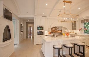 Dotată cu electrocasnice high-end, cuptor de pizza și cămară (care poate fi transformată în birou) bucătăria gourmet face parte dintr-un spațiu generos destinat preparării și servirii mesei: șase persoane pot mânca la insula din bucătărie sau pot servi micul dejun într-o încăpere separată, de formă semicirculară, ale cărei uși duble cu glasvand se deschid spre terasa din spatele casei.